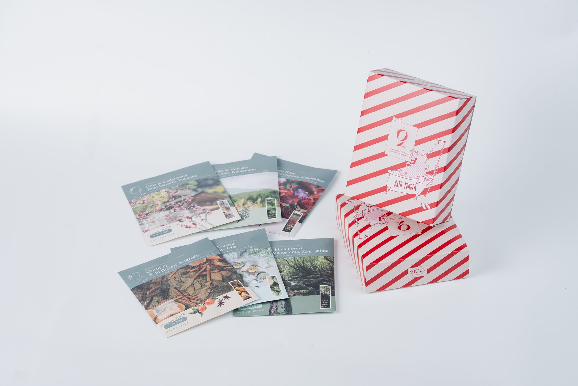 九州各地の天然素材から生まれた、香り豊かなバスパウダー6種を詰め込んだクリスマス限定キットです。